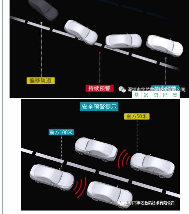 全志(zhì)V40支持ADAS智能(néng)行(xíng)車(chē)輔助,實時(shí)提供智能(néng)化(huà)的(₽de)車(chē)道(dào)偏移預警及前車(chē)碰撞,有(yǒu)效提供安全駕駛提醒,讓您平平安安回家(jiā)。