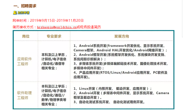 郵箱(接收簡曆):hrzhaopin@worldchip.cn